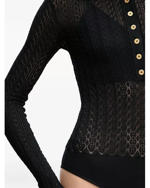 black patterned knit button fastening polo collar long sleeves
