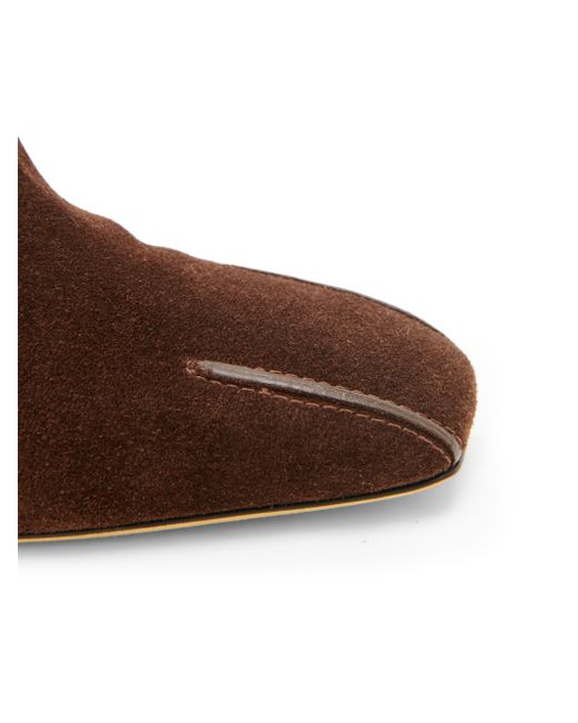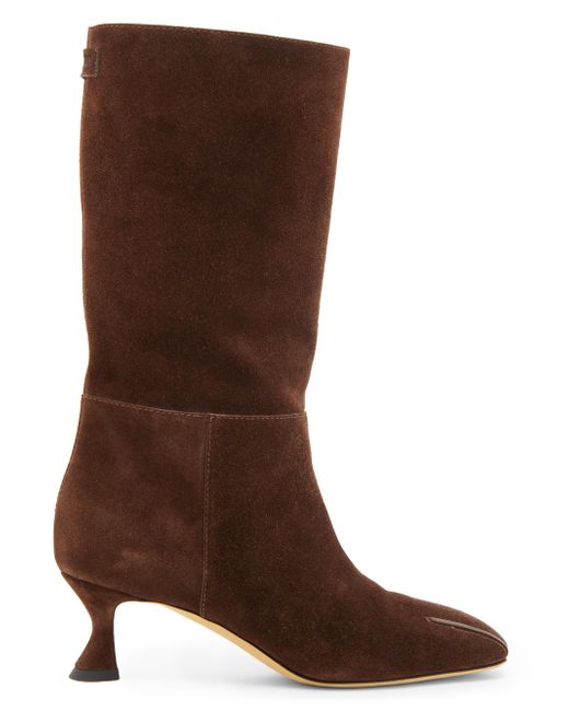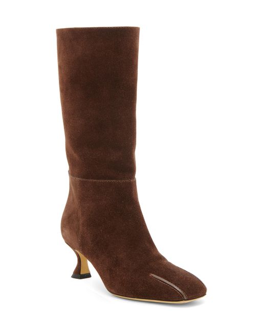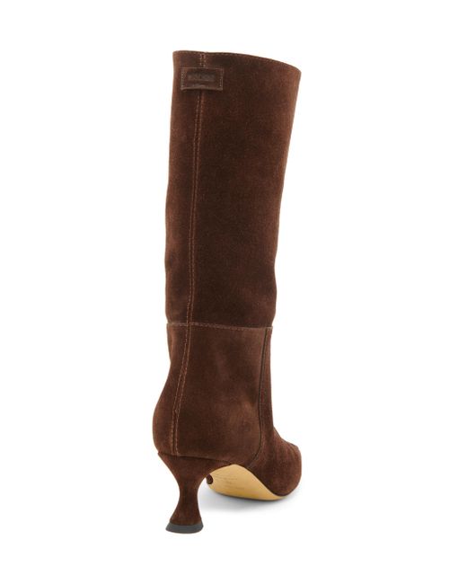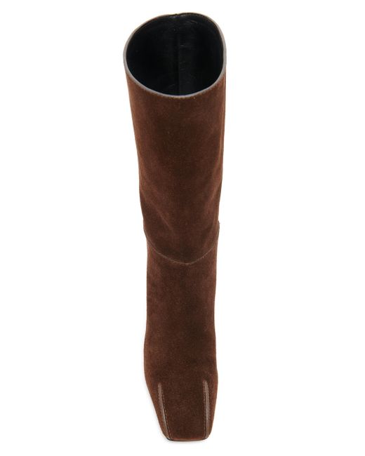 These boots from Moschino are crafted of suede and are constructed with a square toe. Square toe Pulls on Suede upper Lining: leather Leather sole Made in Italy SIZE Heel: about 2" (55mm). Women's Shoes - Designer Womens Shoes > Moschino > Saks Fifth Avenue. Moschino. Color: Chocolate. Size: 8.