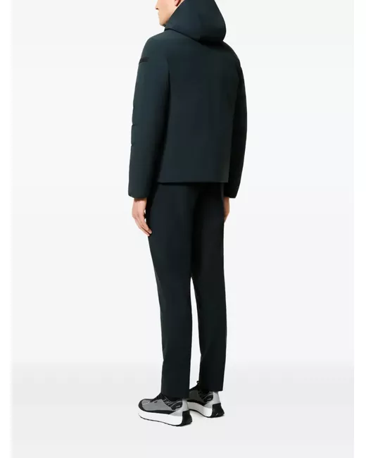 blue hooded zip fastening long sleeves logo patch side zip pockets