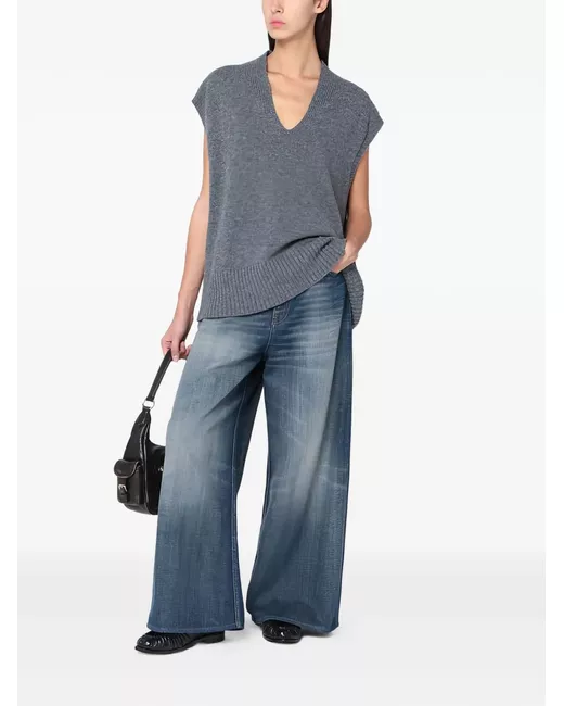 grey merino wool v-neck sleeveless straight hem