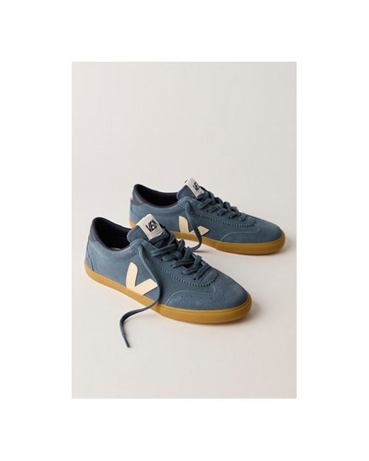 Inspired by the Brazilian volleyball shoes of the 70s, these slim, tapered sneakers from Veja are featured in an organic cotton canvas with suede and leather details. **Features:** Low-top style, organic cotton canvas uppers, logo V detail, suede T-toe, lace-up closure, Amazonian rubber outsole **Why We Veja Volley Trainers Shoe at Free People in California/Pierre/Natural, Size: EU 37