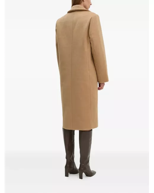 light brown notched lapels front button fastening front flap pockets long sleeves straight hem