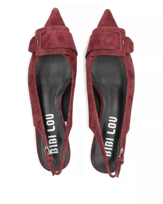 burgundy red suede pointed toe buckle detail slingback strap kitten heel