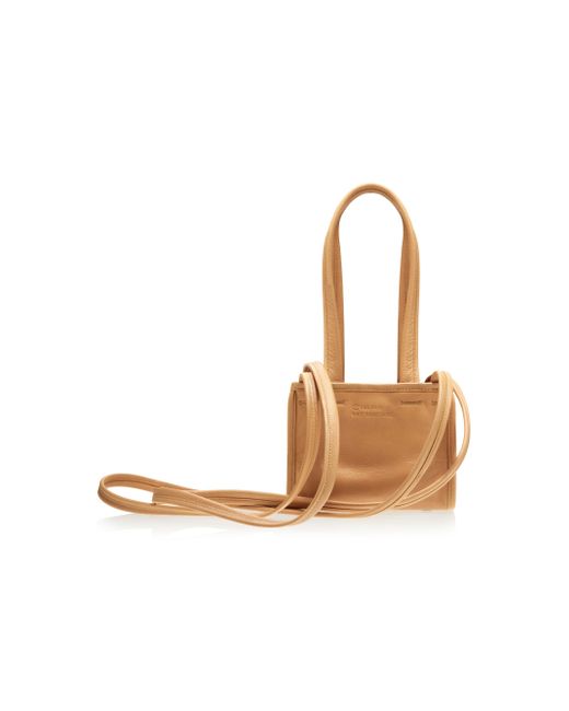 Crafted of leather, TELFAR's small Carry bag features a sleek design with dual carrying options. Made with responsibly tanned leather Two shoulder straps Two crossbody straps Protective metal feet Snap closure Responsibly tanned leather, exclusive of trim Imported SIZE About 7"W x 5.75"H x 5"D Two shoulder straps: about 8.5" drop Two crossbody straps: about 21" drop. Men Accessories - Contemporary Accessories > Telfar > Saks Fifth Avenue. TELFAR. Color: Desert.