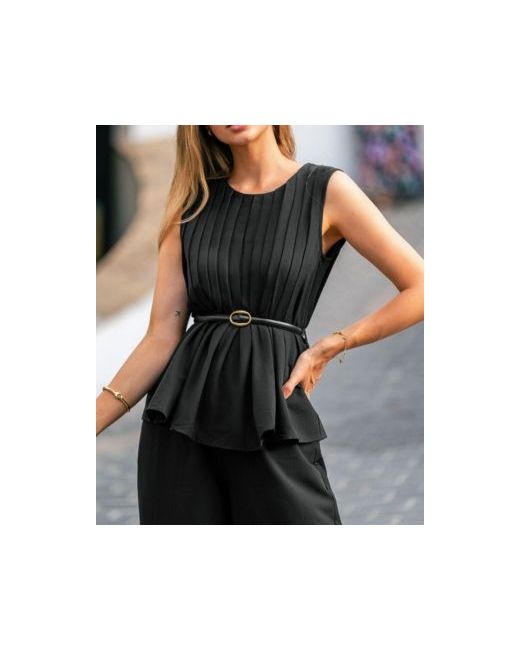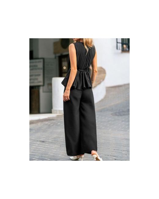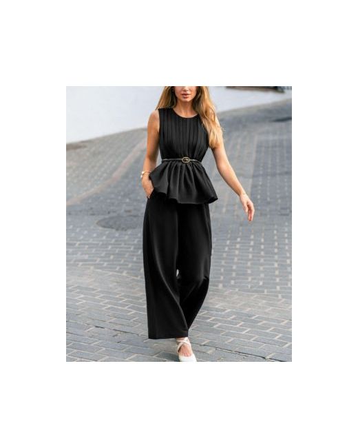 Elevate your wardrobe with this elegant matching set. Featuring a sleeveless peplum top with a slim belt to highlight the waist and wide leg pants for timeless elegance, this outfit delivers both style and comfort. Perfect for office wear, evening dinners, or semi-formal events.
