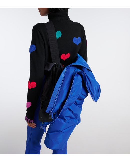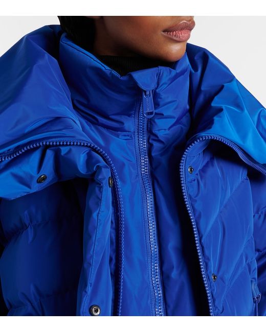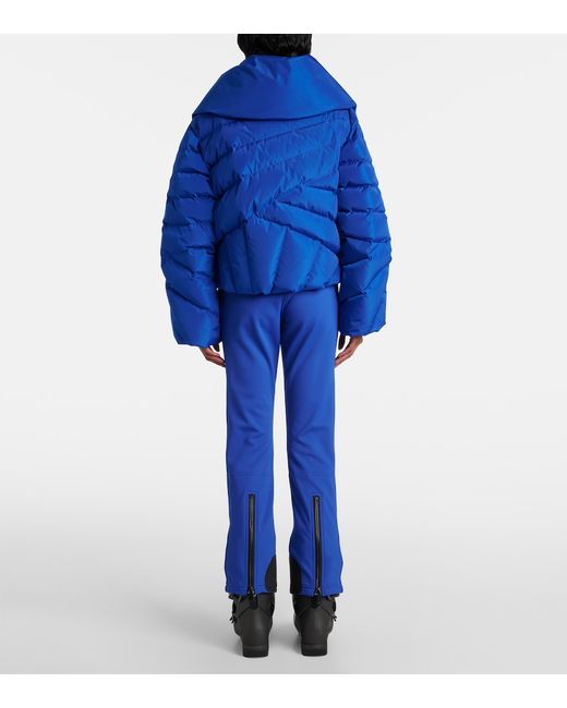 Material: 100% polyester (recycled). Care instructions: specialist clean. Made in Hong Kong. Designer color name: dazzling blue. Item color: blue. Relaxed fit. Closure: zipper, snap-button fastenings. Lining: 58% polyester, 42% polyester (recycled). Filling: 90% down, 10% feathers. Pockets: zipped pockets, internal pockets, ski-pass pocket. Elasticated waistband.