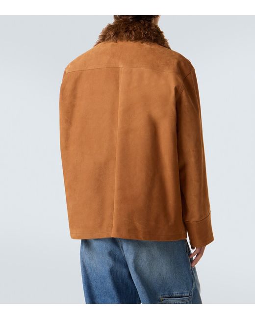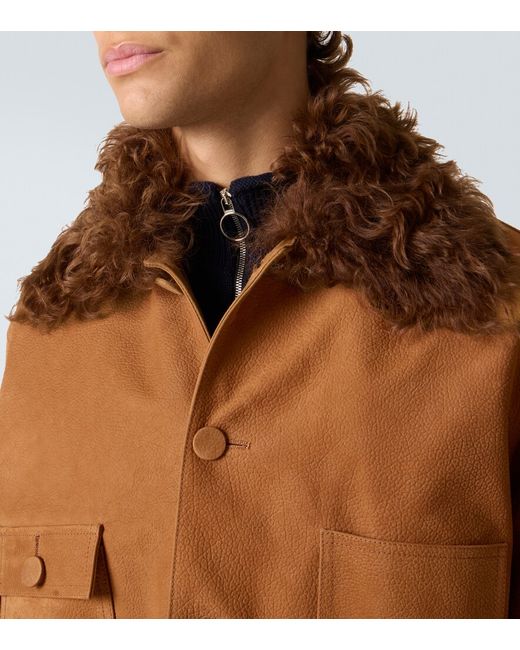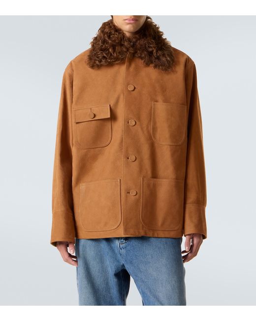 Material: 90% calf leather, 10% lamb leather. Care instructions: specialist clean. Made in Italy. Designer color name: Tobacco. Item color: brown. Lining: 100% cupro. Material II: 34% cupro, 33% polyester, 33% polypropylene. Trim: 100% calf hair. Closure: buttoned front. Pockets: buttoned pockets, patch pockets. Detachable inner vest. Detachable collar. Leather.