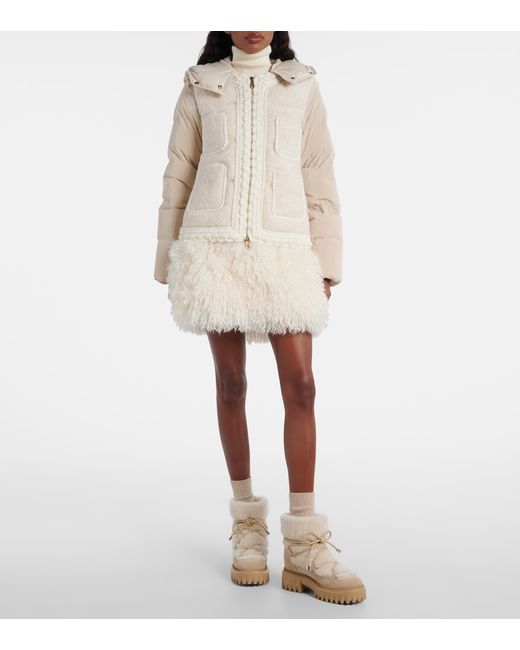 Material: 100% polyamide. Care instructions: hand wash. Made in Hungary. Designer color name: 21L. Item color: beige. Material II: 45% acrylic, 31% polyester, 12% polyamide, 6% viscose, 6% wool. Lining: 100% polyamide. Lining II: 100% polyamide. Filling: 90% down, 10% feathers. Contains non-textile parts of animal origin. Closure: two-way zipped front. Pockets: patch pockets. Detachable drawstring hood. Cuff: elasticated.