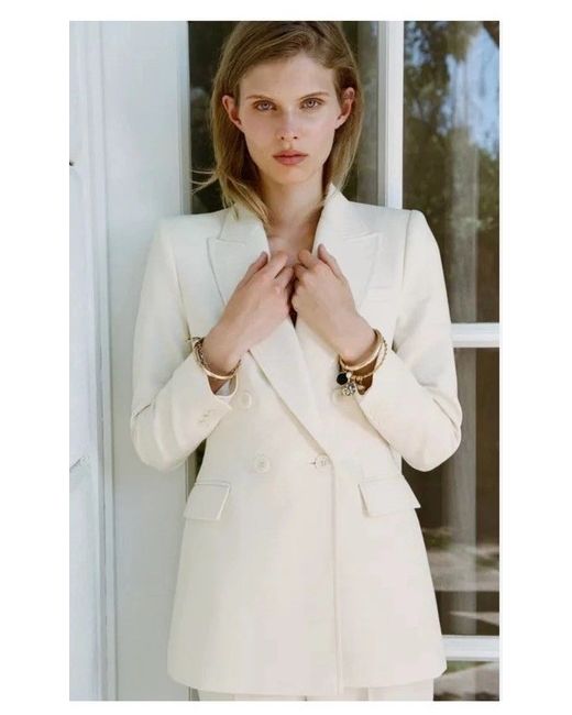 Zw Collection Double-Breasted Blazer Ecru M New Bloggers Favourite
