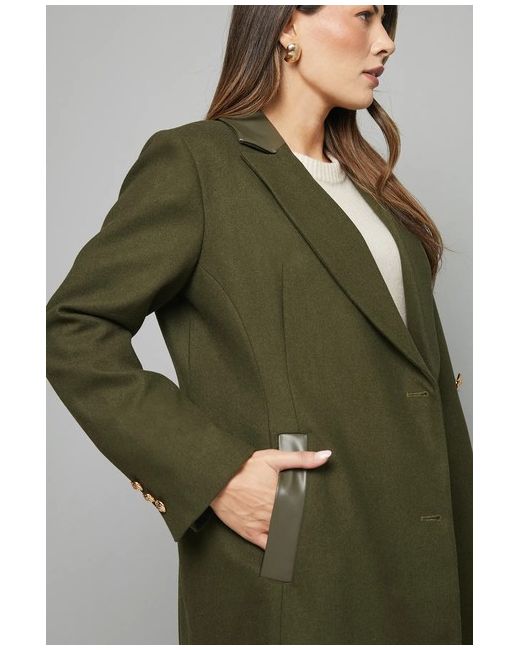 The versatile regular fit makes this coat perfect for comfortable layering during cooler months, whilst maintaining a polished appearance. WALLIS PU Pocket Detail Longline Coat.