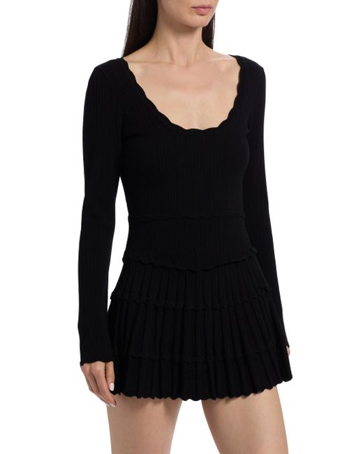 Designed with a stretch pointelle knit finish, this Lavender minidress from LoveShackFancy features a tiered ribbed design and scoopneck. Scoopneck Long sleeves Pulls over 63% viscose/35% polyester/2% spandex Dry clean Imported SIZE & FIT About 30.5" from shoulder to hem Model measurements: 5'10" tall Model is wearing a US size 4. Contemporary Sportswear - Trend > Loveshackfancy > Saks Fifth Avenue. LoveShackFancy. Color: Black. Size: XS.