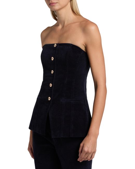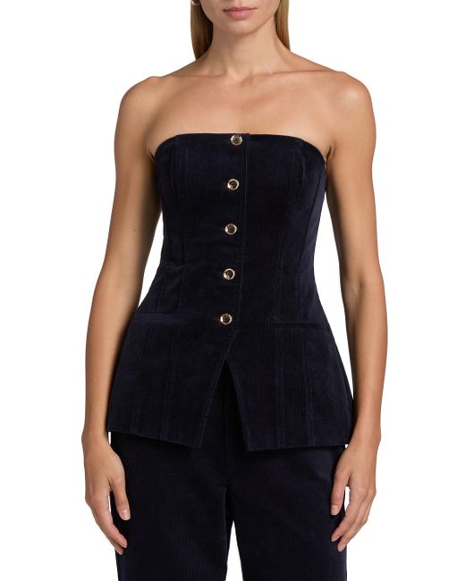 Cami NYC's Iman strapless top is crafted of stretch-cotton corduroy. Strapless Front welt pockets Concealed back zip closure 97% cotton/3% spandex Lining: 95% viscose/5% spandex Dry clean Imported SIZE & FIT Model measurements: 5'10" tall Model is wearing a US size 4. Contemporary Sportswear - Trend > Cami Nyc > Saks Fifth Avenue. Cami NYC. Color: Navy. Size: 0.