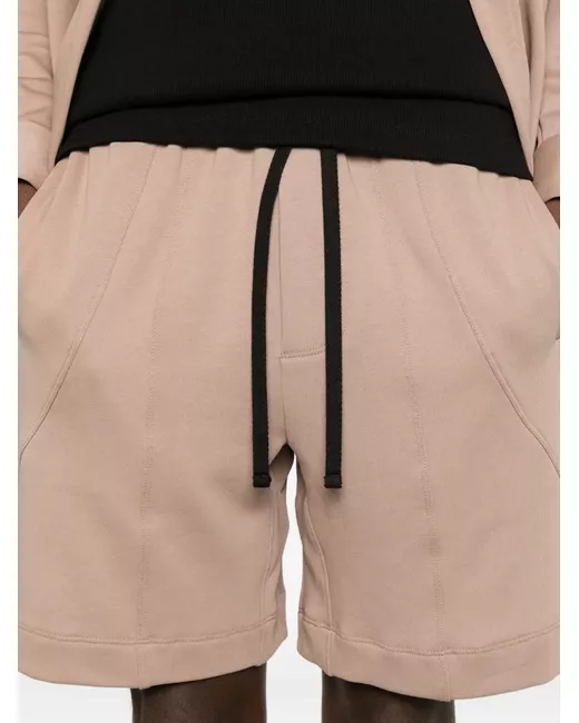 beige drawstring fastening panelled construction side slit pockets elasticated waistband rear welt pocket