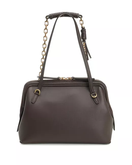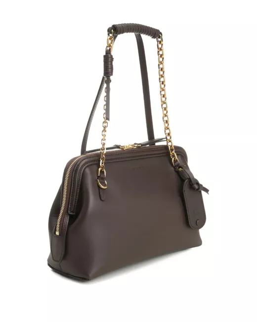 brown chain detail top zip fastening top handle tag internal slip pocket
