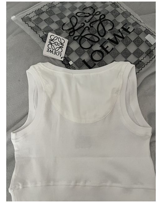 The Loewe crop top is a stylish and comfortable sleeveless tank top made from cotton, perfect for casual occasions in the summer season. With a regular fit and a cropped style, this white top offers a versatile addition to any woman's wardrobe. Machine washable for easy care, the top is available in size M and is ideal for pairing with high-waisted bottoms for a trendy look. The Loewe brand ensures quality and sophistication in this chic wardrobe staple.