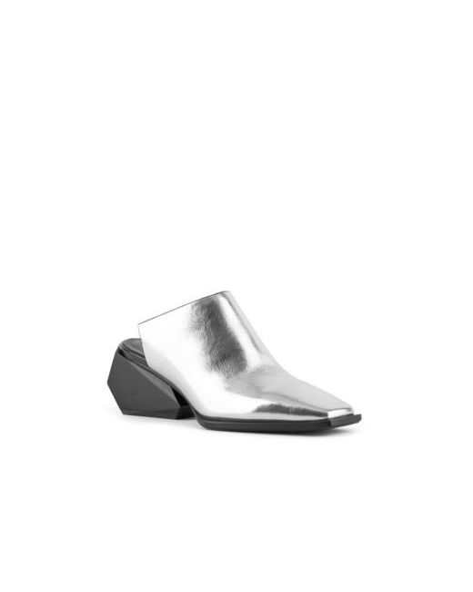 The Ricky Mule Mid features a sleek leather upper and a uniquely sculpted, geometric block heel. This multifaceted, architectural heel adds a touch of futuristic flair and elevates the boot from simple to statement-making, while the open-back design provides effortless slip-on wearability.