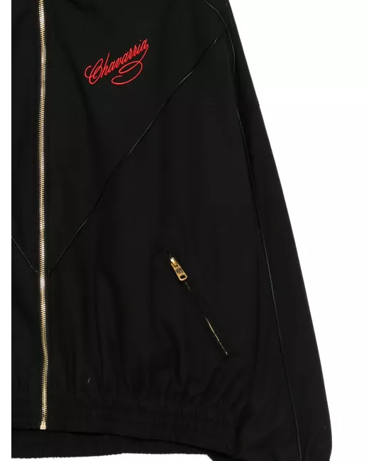 black front zip fastening two side zip-fastening pockets long sleeves embroidered logo at the chest