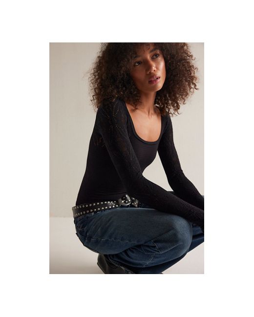 So soft and seriously stretchy, this seamless long sleeve features a wide scoop neckline and smocked fabrication with intricately detailed sleeves. **Fit:** Formfitting, hip-length, slim-fitting sleeves, stretchy design **Features:** Smocked fabrication, seamless design, scoop neckline, open-knit detailing at sleeves **Why We So Many Likes Long Sleeve by Intimately at Free People in Black, Size: XS/S