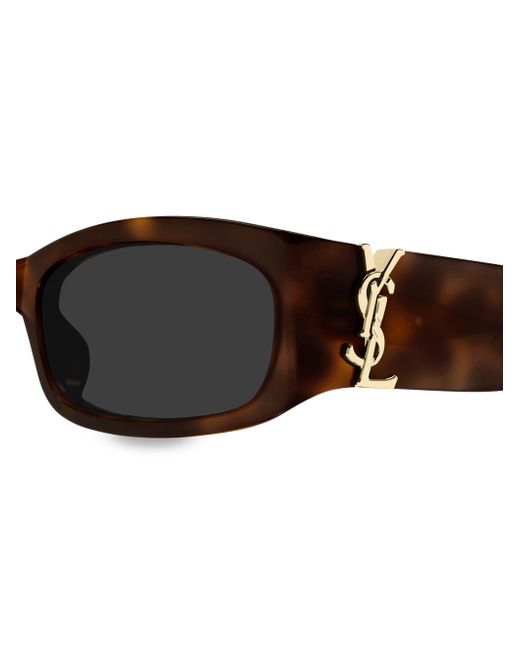 These rectangular sunglasses from Saint Laurent are designed with a solid lens and saddle nose. 100% UV protection Solid lenses Includes case and cleaning cloth Acetate Made in Italy SIZE 55mm lens width 19mm bridge width 135mm temple length Please note: Lens replacement is non-optional. Soft Accessories - Sunglasses > Saint Laurent > Saks Fifth Avenue. Saint Laurent. Color: Havana.