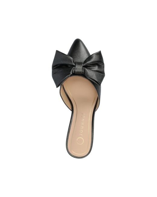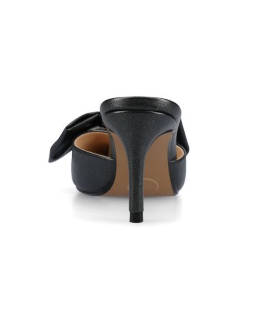 So simple yet so eye-catching, these Tiarra stiletto heels from Journee will have you feeling like a princess with their chic satin material, mule style, and bow detail. The Tiarra heels are such easy grab-and-go shoe for your convenience; having them be a slip-on heel and their pointed-toe ends, they're going to make your outfit look snatched. As a bonus, they have a padded insole that will have your feet feeling like you're walking on cloud 9. At Journee, our pump styles will let you go from a fun night out with the girls to kicking back and relaxing at the end of the night without any trouble. Also available in wide width.