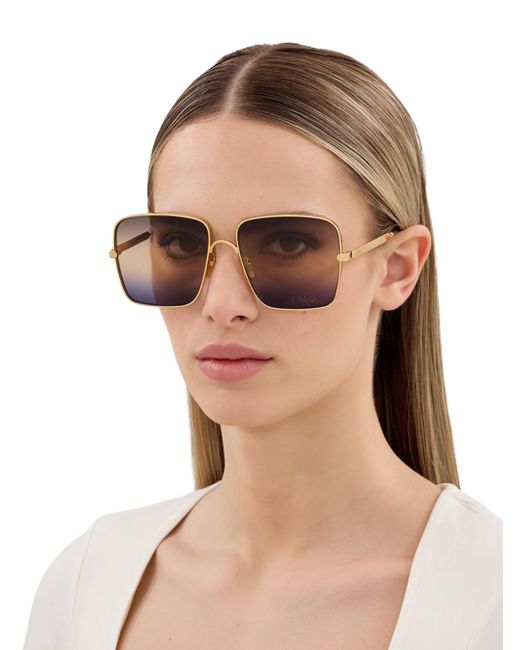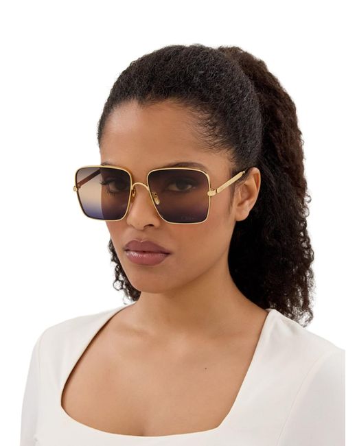 From the Aly Bold Collection. Made in Italy, these square sunglasses from Chloé are crafted of metal and styled with gradient lenses and colored end tips. 100% UV protection Gradient lenses Adjustable nose pads Includes case and cleaning cloth Metal/acetate Made in Italy SIZE 61mm lens width 17mm bridge width 140mm temple length Please note: Lens replacement is non-optional. Soft Accessories - Sunglasses > Chloé > Saks Fifth Avenue. Chloé. Color: Gold Black.