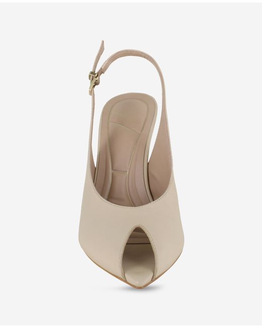 WHAT’S IN IT FOR YOU? Slingback leather heel Stylish pointed peep toe Ankle buckle closure Gold-tone hardware Rubber sole 3.9 in. heel height 100% leather Wipe clean Imported | Kenneth Cole | Priya Leather Peep-Toe Slingback Heel in NATURAL LEATHER, Size: 5