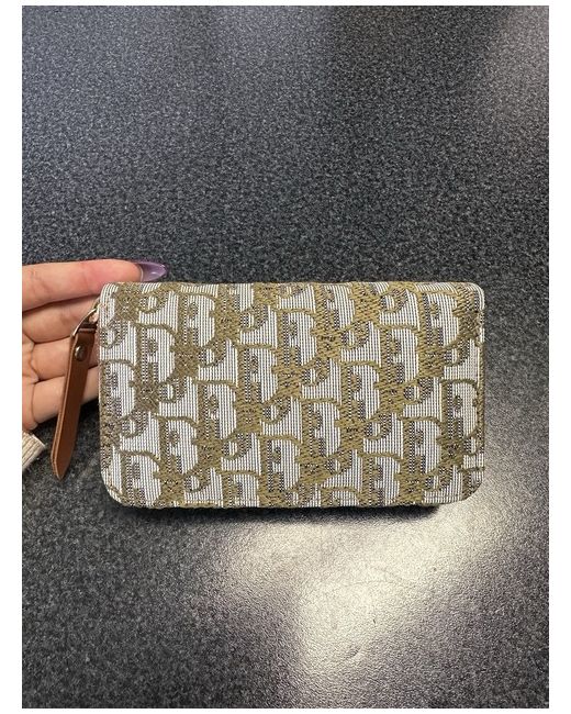 The Dior Wallet is a stylish and practical accessory for women, featuring a zip-around design and multiple credit card slots. Made from durable canvas fabric in a classic beige colour, this wallet embodies luxury and sophistication. With the iconic Dior brand name, this wallet is perfect for adding a touch of elegance to any outfit. Personalisation is not available, making it a timeless piece that is sure to become a staple in any wardrobe.