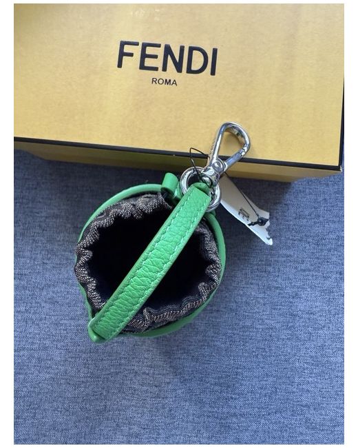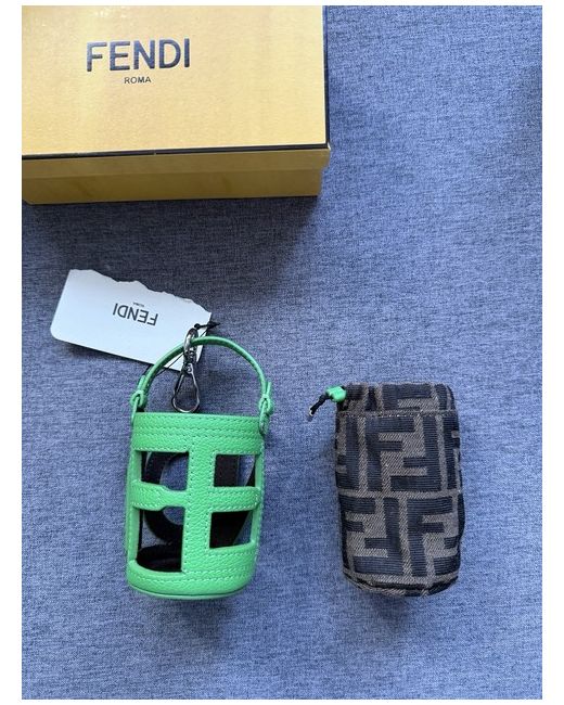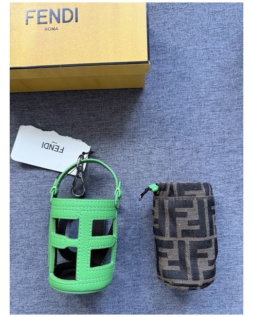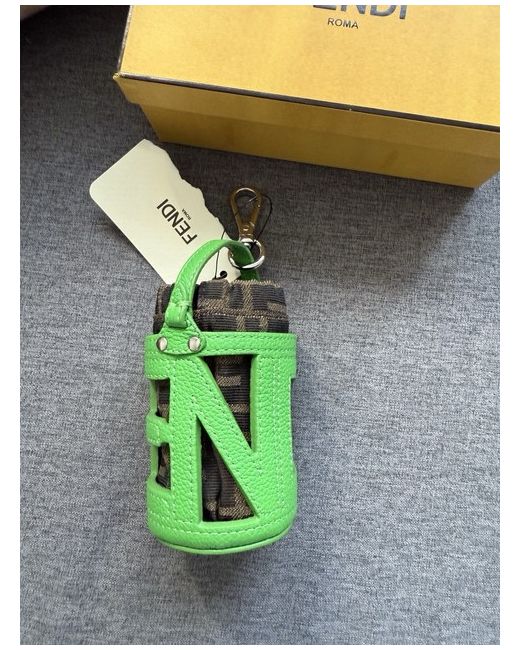 Fendi handbag charm features a distinctive Zucca pattern and is crafted from a combination of canvas and leather.