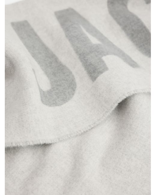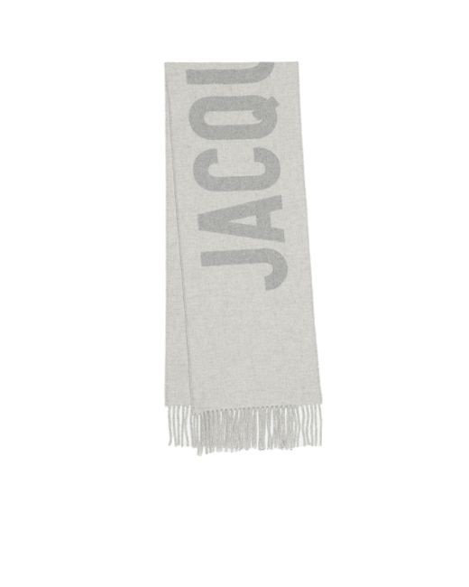 Jacquemus' L'echarpe wool scarf features a large logo print and fringe trim. Virgin wool Dry clean Made in Italy. Men Accessories - Designer Accessories > Jacquemus > Saks Fifth Avenue. Jacquemus. Color: Grey.