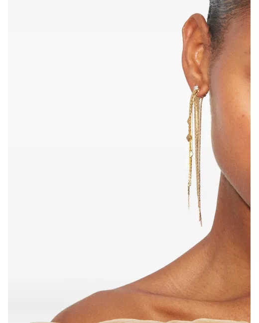 silver-tone chain detail crystal embellishment post-back fastening drop design for pierced ears These earrings come as a pair.