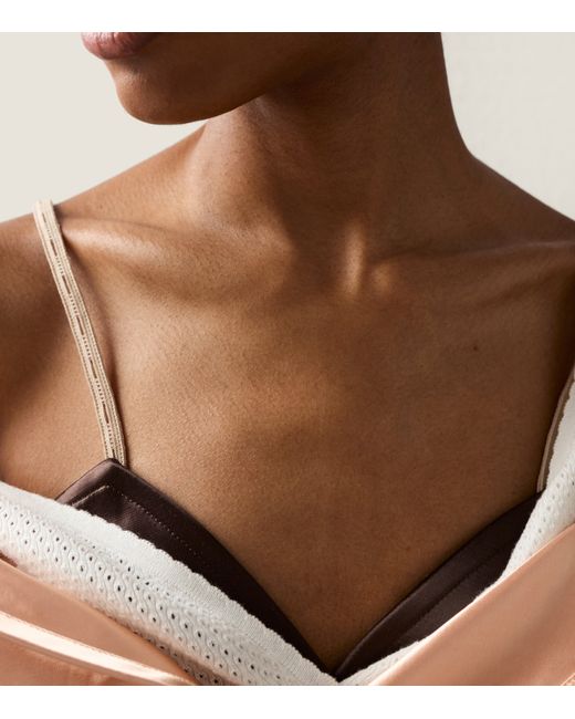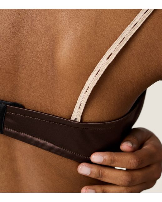Crafted with the House's signature finesse, this Miu Miu bra is a high-fashion ode to luminous glamour. Tailored in sleek silk-satin, it features comfortable elasticated straps with button fastenings and an underwired structure for sculptural support.
