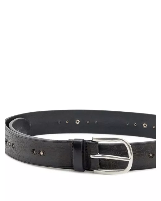 black floral pattern motif silver-tone hardware stud detailing front buckle fastening tonal stitching