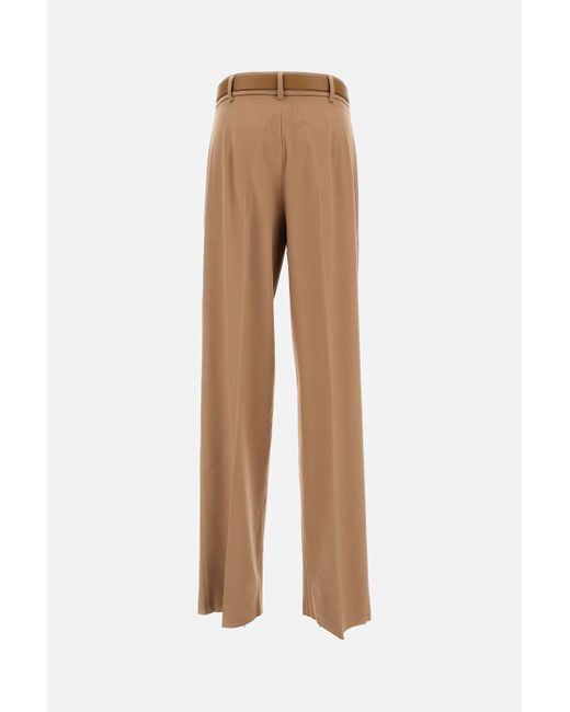 Made from pure wool drapLoose fit and fluid lines, wide leg cut.High waistband closure, zip with flap and hook.Matching belt to define the silhouette.French pockets on the sides, pressed crease and double pleats sewn on the back. Beige color.