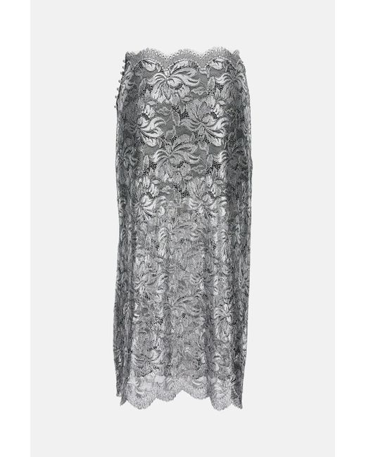 Moon skirt in transparent lace with silver lacquer. Silver color