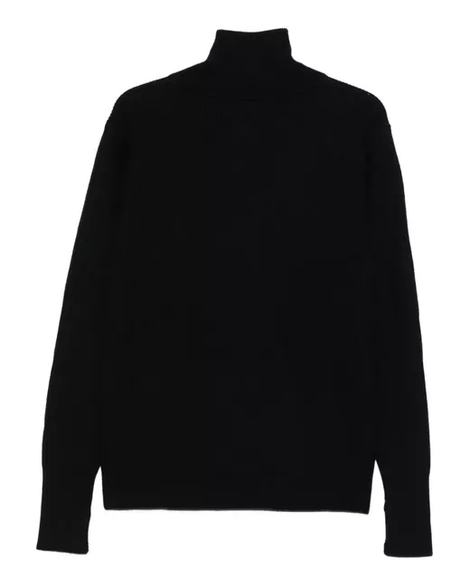 navy blue wool high neck front zip closure long sleeves
