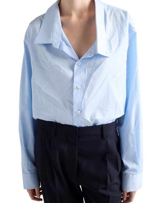 Poplin Shirt. Masculine fit Shirt collar Front button closure Fabric triangle logo Straight hem Made in Italy 100% Cotton. Lsd Rtw - Prada Rtw > Prada > Saks Fifth Avenue. Prada. Color: Blue. Size: 2.