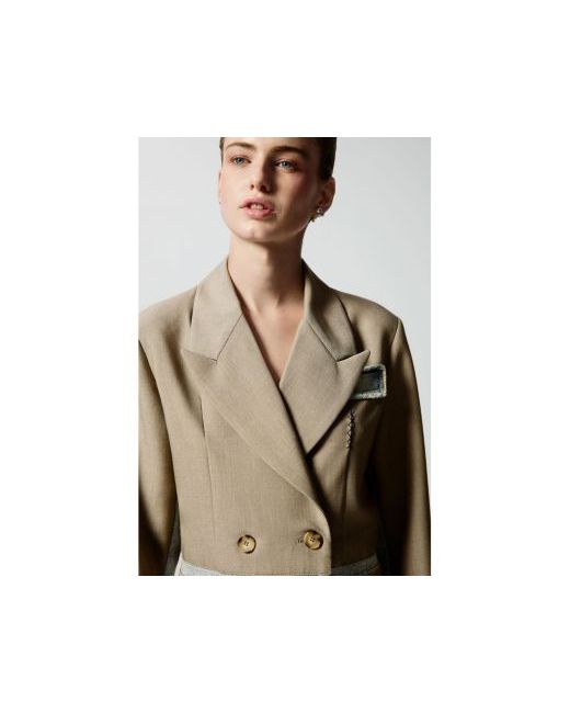 Crop blazer with two materials