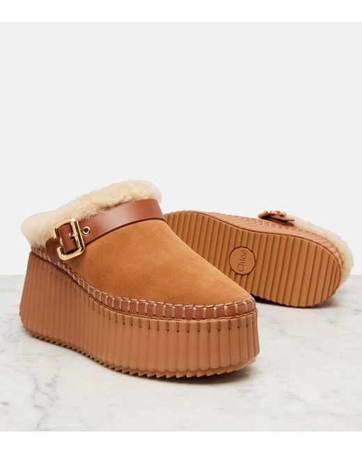 Upper: calf leather (suede). Lining: shearling. Sole: shearling insole, rubber sole. Toe shape: round toe. Made in Vietnam. Includes: shoe box, dust bag. Designer color name: Pottery Brown. Item color: brown. Hardware color: gold. Closure: buckle fastening.