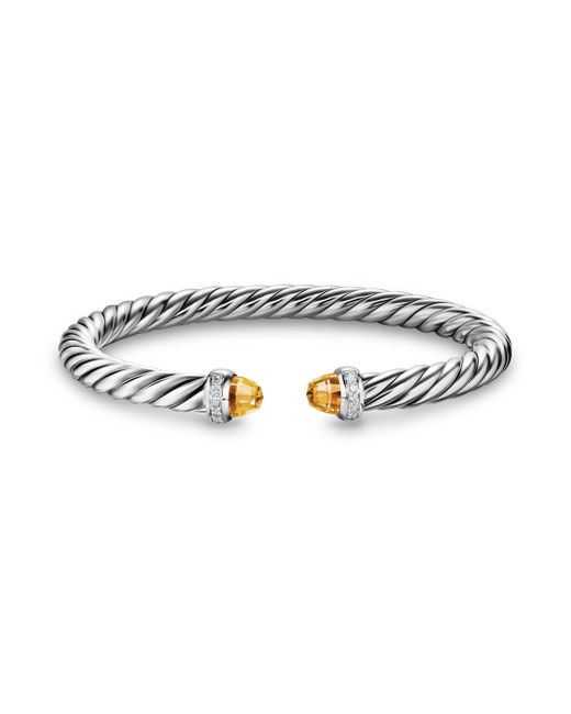David Yurman's artistic signature, Cable began as a bracelet that he hand-twisted from 50 feet of wire. For the past 30 years, he has evolved the twisted helix into a myriad of designs. Sterling silver Cultured freshwater pearls, 6 - 6.3mm Pavé set diamonds, 0.13 total carat weight Bracelet, 6mm Nitinol core to provide flex movement Size Small (S) fits wrists up to 6.14'' Made in USA ABOUT THE BRAND David, a sculptor, and his wife, Sybil, a painter, launched their innovative jewelry brand in 1980 in New York City. Since then, the American design house has pioneered cutting-edge collections-from its iconic combination of sterling silver and diamonds to signature pinky rings. Today, with their son Evan, the Yurmans continue to deliver timeless pieces inspired by nature, art, ancient symbols and Manhattan's stunning architecture. Lsd Jewelry - David Yurman > David Yurman > Saks Fifth Avenue. David Yurman. Color: Citrine. Size: Large.