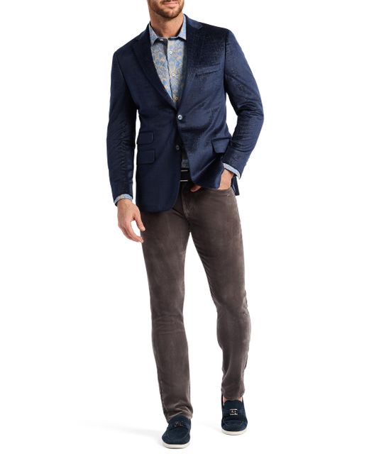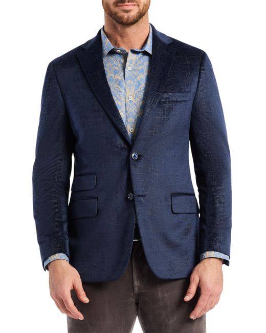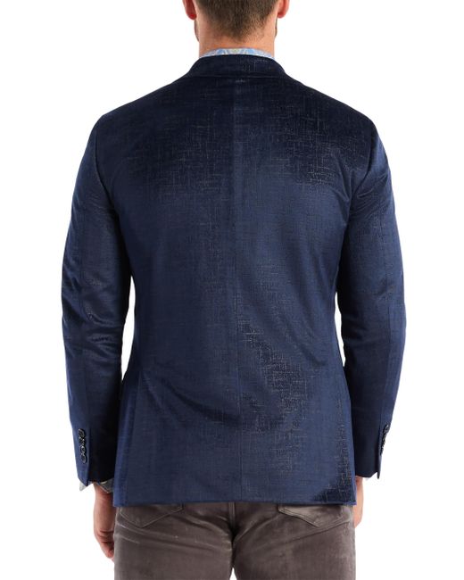 Robert Graham's Ramon sport coat is woven with a crosshatch pattern. This lustrous style is crafted with stretch and tailored in a slim single-breasted silhouette. Notch lapels Padded shoulders Long sleeves, button cuffs Chest welt pocket Side flap pockets Back vents Button-front closure 100% polyester Dry clean Imported SIZE & FIT About 28" from shoulder to hem Model measurements: 6'2" tall Model measurements: chest 40", waist 31" Model is wearing a US size 40R. Mens Modern Coll & Outer - Contemp Classic Collecti > Robert Graham > Saks Fifth Avenue. Robert Graham. Color: Navy. Size: 15.75.