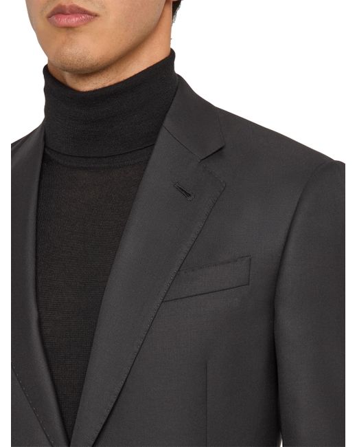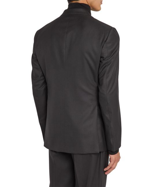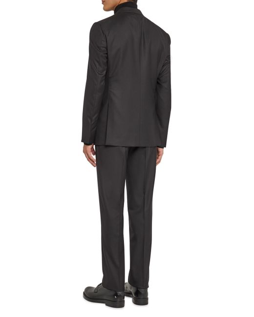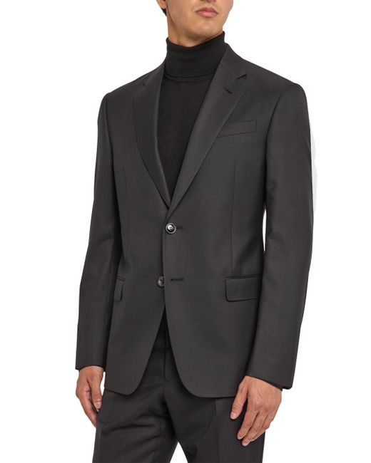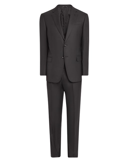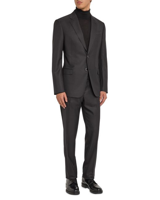 This Giorgio Armani suit is crafted of a virgin wool blend and cut for a classic fit. The jacket features notch lapels, a two-button front, and a double-vented back, while the trousers offer a flat-front, tapered-leg silhouette. Classic fit. Virgin wool/viscose. Partially lined. Dry clean. Made in Italy. JACKET Notch lapels, buttonhole at left lapel Long sleeves Chest welt pocket Side flap pockets Double-vented back Two-button closure TROUSERS Flat front Side on-seam pockets Unfinished hem Zip fly SIZE & FIT Model measurements: 6'2" tall, 40" chest, 31" waist Model is wearing a US size 40R. Men Luxury Coll - Giorgio Armani Clothing > Giorgio Armani > Saks Fifth Avenue. Giorgio Armani. Color: Black. Size: 36.