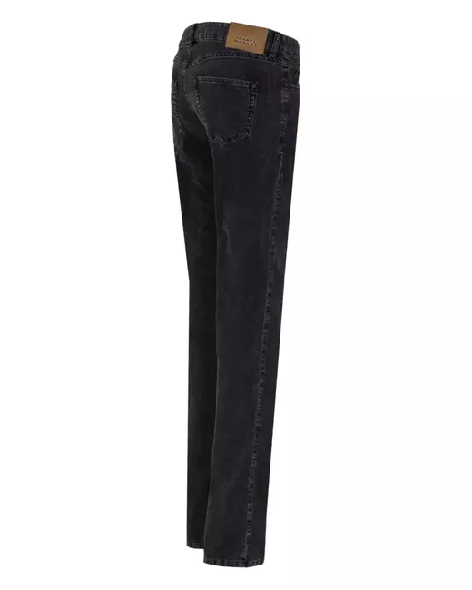 black patch pocket belt loops rear logo patch top button fastening five pockets