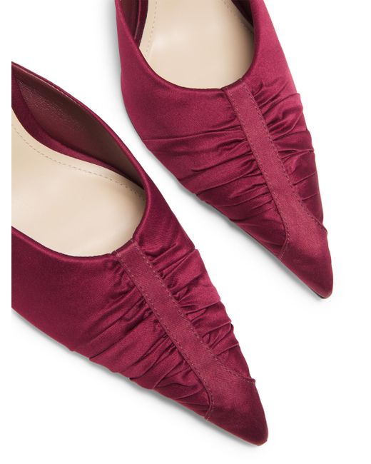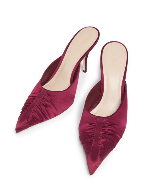 Crafted of satin, these 22élevé mules feature a ruched vamp for added texture and are set on a 85mm heel. Point toe Slips on Satin upper Leather lining Padded insole Leather sole Imported SIZE Heel: about 3.25" (85mm). Women's Shoes - Designer Classics > 22élevé > Saks Fifth Avenue. 22élevé. Color: Bordeaux. Size: 10.