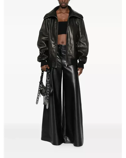 black zip fastening buttoned detailing wide collar ribbed cuffs welt pockets