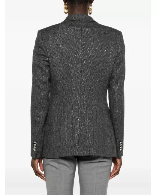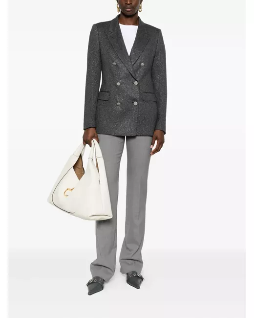 grey double-breasted button fastening notched lapels side flap pockets buttoned cuffs