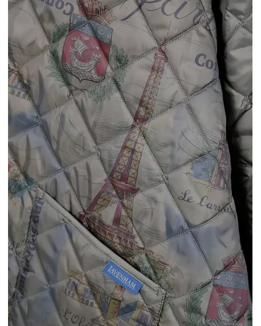 grey quilted all-over graphic print classic hood zip fastening patch pockets