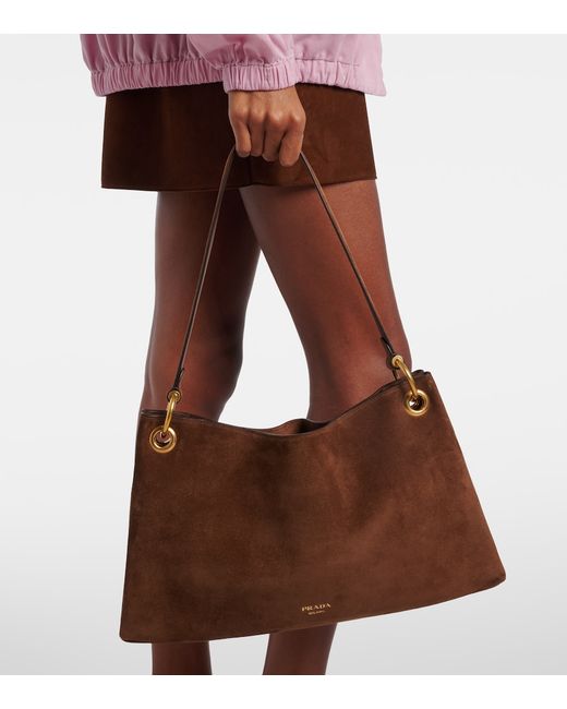 Material: leather (suede). Lining: leather. Made in Italy. Designer color name: Brown. Item color: brown. Hardware color: gold. Top handle. Internal details: internal zipped pocket, single compartment. Closure: magnetic fastening. Leather. Includes: dust bag.