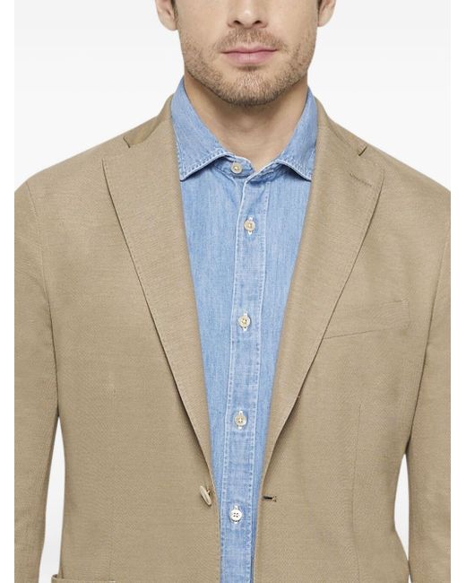 beige button closure patch pockets notched lapel straight hem