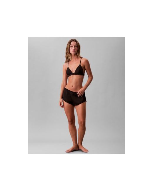 Channel timeless elegance with these Calvin Klein satin tap shorts, displaying a bonded logo patch at the center front. They feature a slim mid-rise waistband and a full-coverage boy short silhouette.