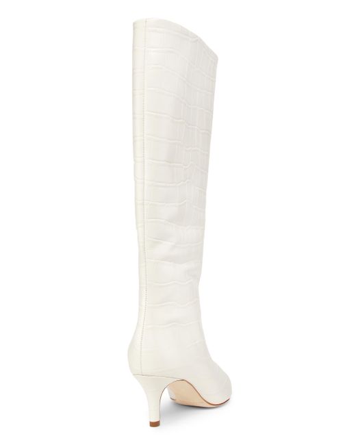 These knee-high boots from 22élevé are crafted of croc-embossed leather and designed with a point toe and 55mm covered heel. Point toe Side zip closure Leather upper Textile lining Padded insole Leather sole Imported SIZE True to size Covered heel: about 2.25" (55mm) Shaft: about 14.5" Leg opening: about 16". Women's Shoes - Designer Classics > 22élevé > Saks Fifth Avenue. 22élevé. Color: Ivory Embossed Crocodile. Size: 6.